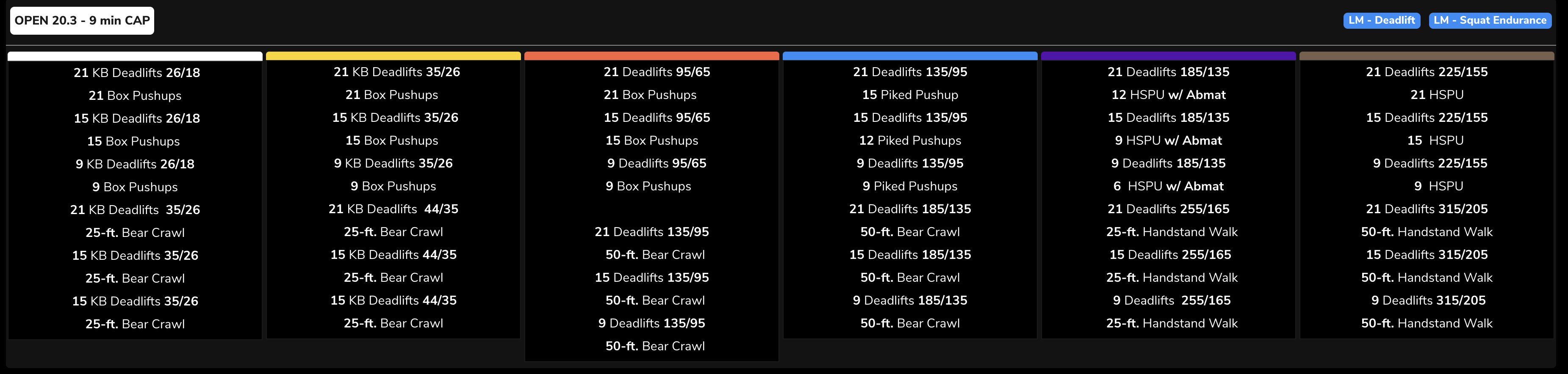 20.3 Workout Scaling Options DL #1 UB #1 DL #2 UB #2